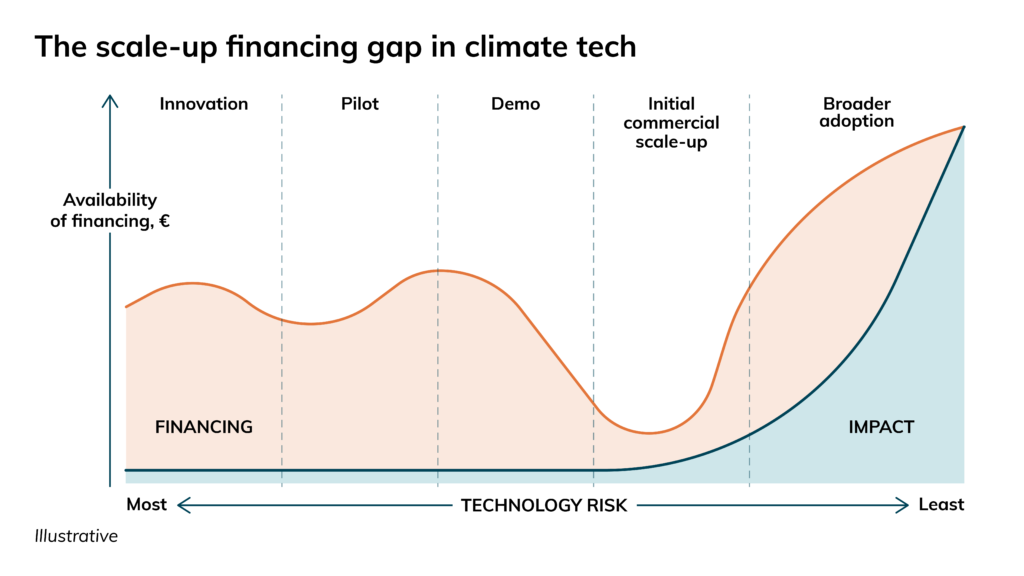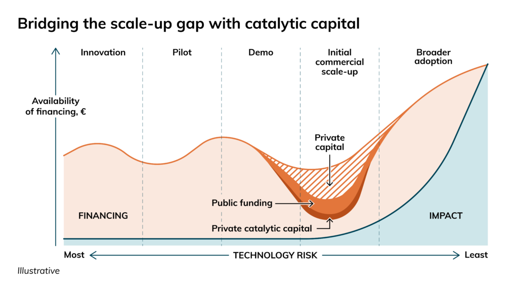 The problem isn’t a lack of inventions. According to a report by management consulting company McKinsey, about 90 percent of the technologies needed for reaching net zero by 2050 already exist. “Too many players—including foundations and venture capital funds—focus on the early stages, like commercializing research and bringing it to market. That is of course important, but if most of the required technologies already exist, the real bottleneck lies elsewhere: in scaling,” Poropudas says.